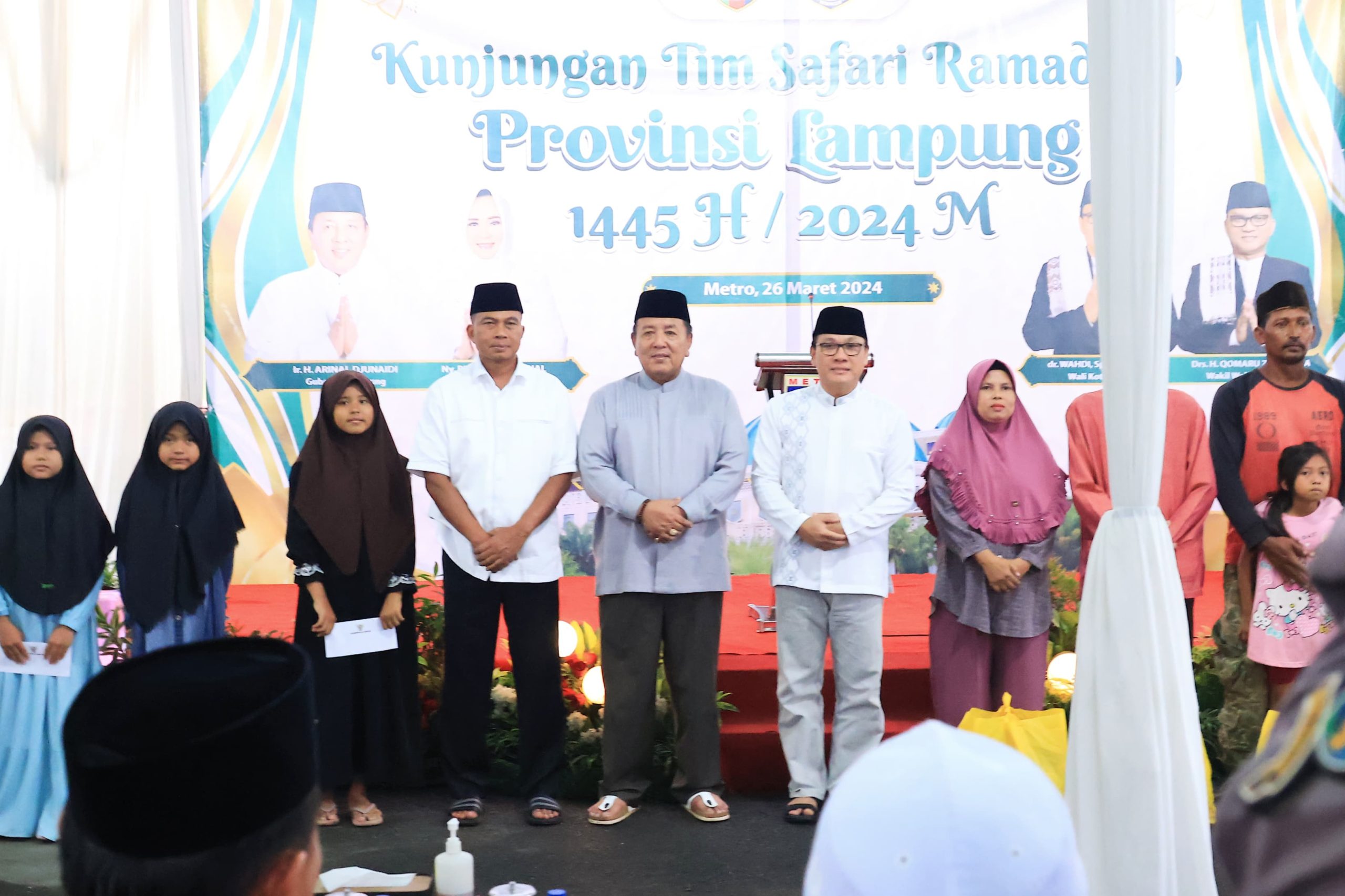 Kota Metro – Gubernur Arinal Djunaidi bersama Danrem 043/Gatam dan Pejabat Pimpinan Tinggi Pratama di Lingkungan Pemerintah Provinsi Lampung menggelar Safari Ramadan 1445 H/2024 di Kota Metro, Selasa (26/3/2024).