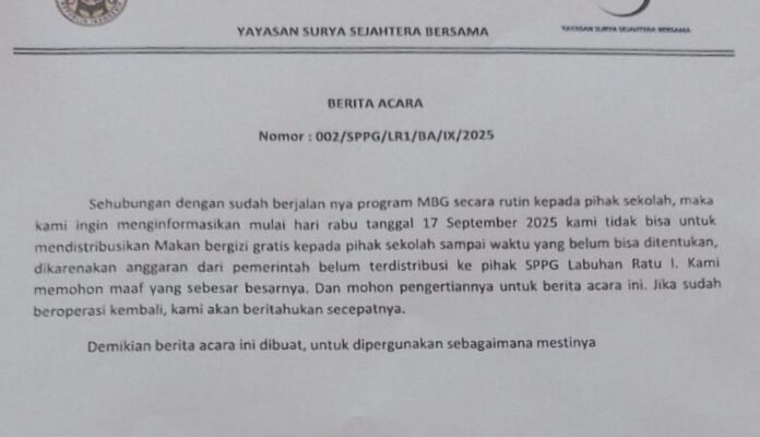 Program Makan Gizi Gratis di SD Baitul Muslim Terhenti Wali Murid Kecewa Uncategorized|September 18, 2025oleh Adm Lampung Timur (SuryaLampung) – Program makan gizi gratis untuk anak-anak sekolah dasar